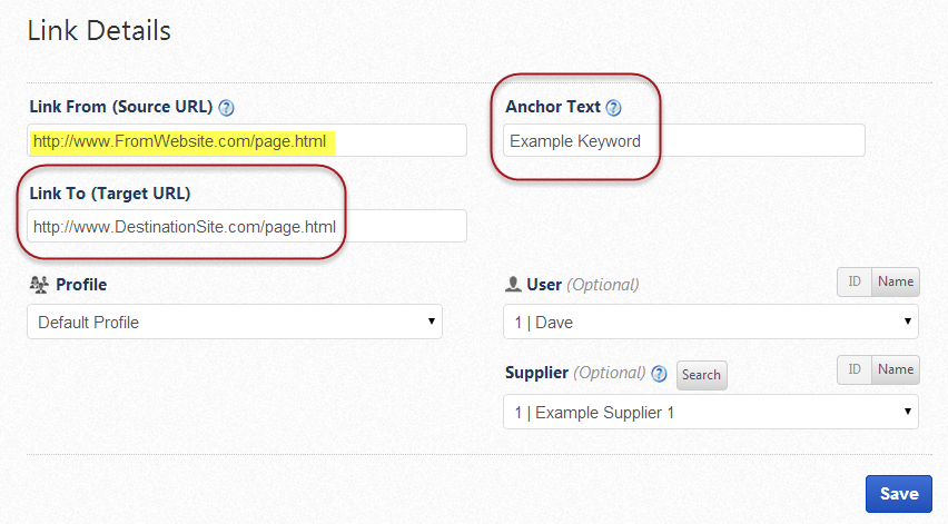- Make any necessary changes to those links and/or anchor text in the Link Details screen and click the Save button