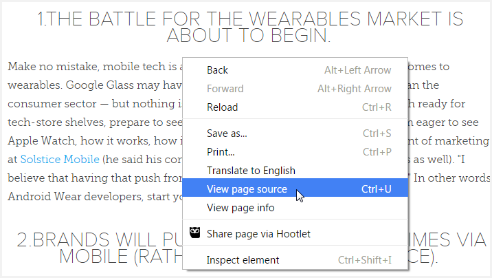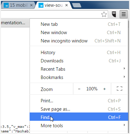 In the view-source tab, click the menu icon (this example is Chrome, others are similar) and select