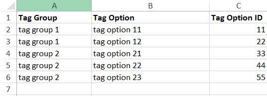 - tags column: if Tag Manager is Enabled, enter in tags in this format: