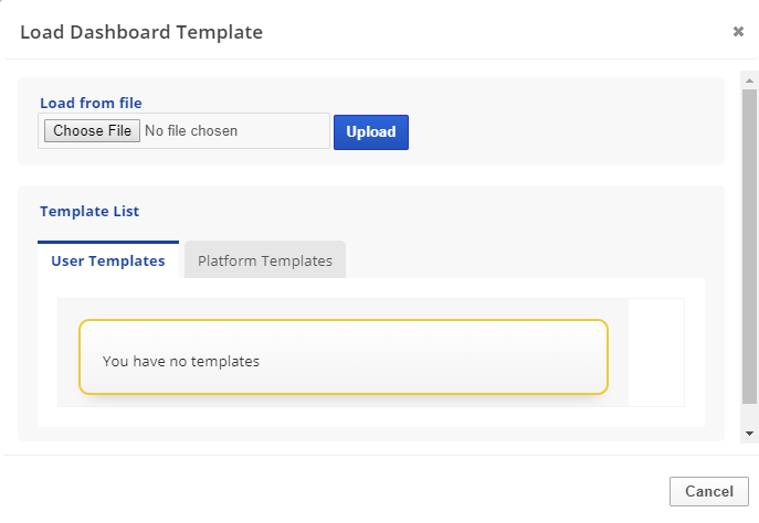 If your company has created and saved dashboard templates, then you may choose to load the design and/or content by clicking the corresponding button.