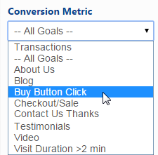 • Specific Goals that appear in the list based on the goals you've set in your Google Analytics account (items shown here are examples).