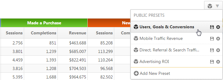Create multiple versions of Marketing KPI reports with presets