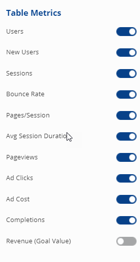 Show or Hide Ad Clicks, Ad Cost, Goal Completions or Revenue