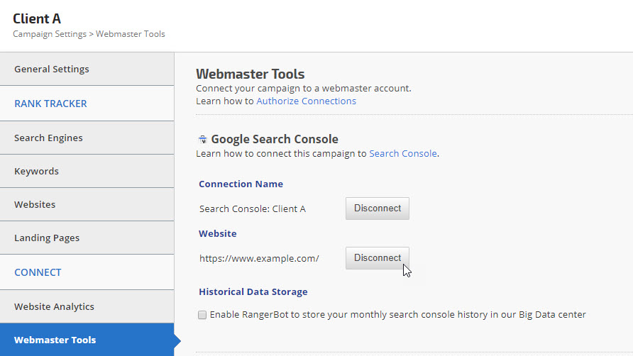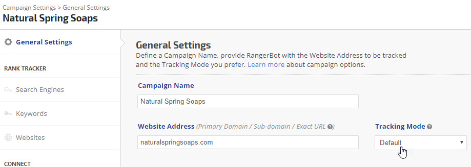 Campaign Settings > Webmaster Tools screen for each campaign that is changed.