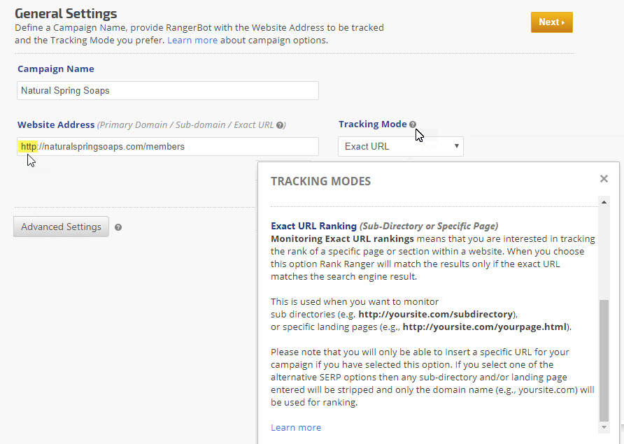 HTTPS version of the website, open the campaign settings > webmaster tools screen and click the