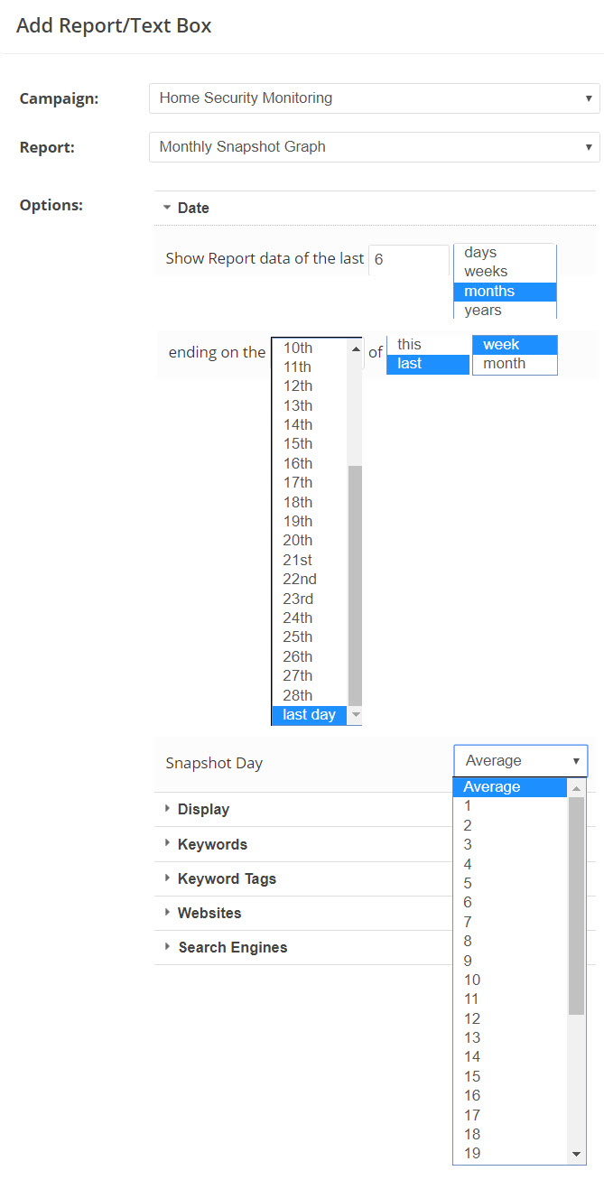 • Choose the Snapshot Day, this will determine the date the rank will be displayed for. You can select a specific day of the month or the Average rank for each month.