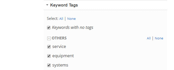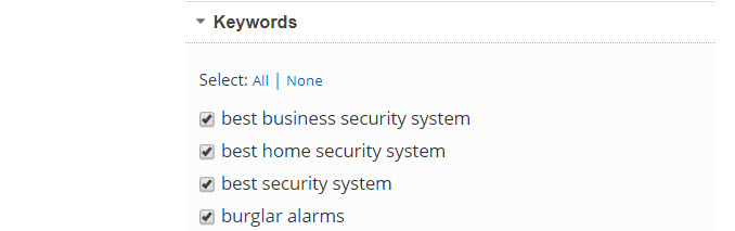 Select up to 8 Keywords by adding or removing the check mark next to the Keyword.