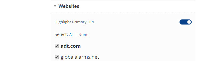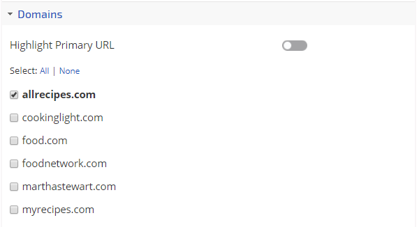 When choosing to display competitor domains in the report, you have the option to Highlight the Primary URL by moving the slider to the right.