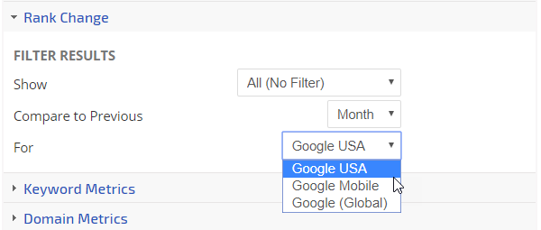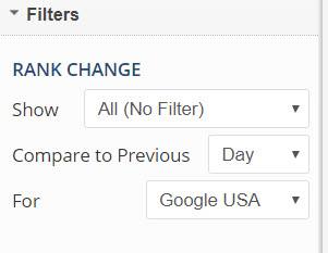 • For: select the Search Engine that the Rank Change Filters should be applied to