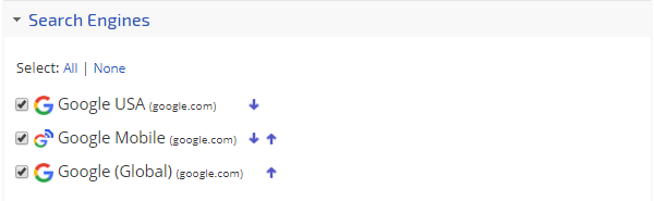 If multiple Search Engines are selected, you have the option to change the display order by clicking the arrow next to the Search Engine and dragging it into the desired order.
