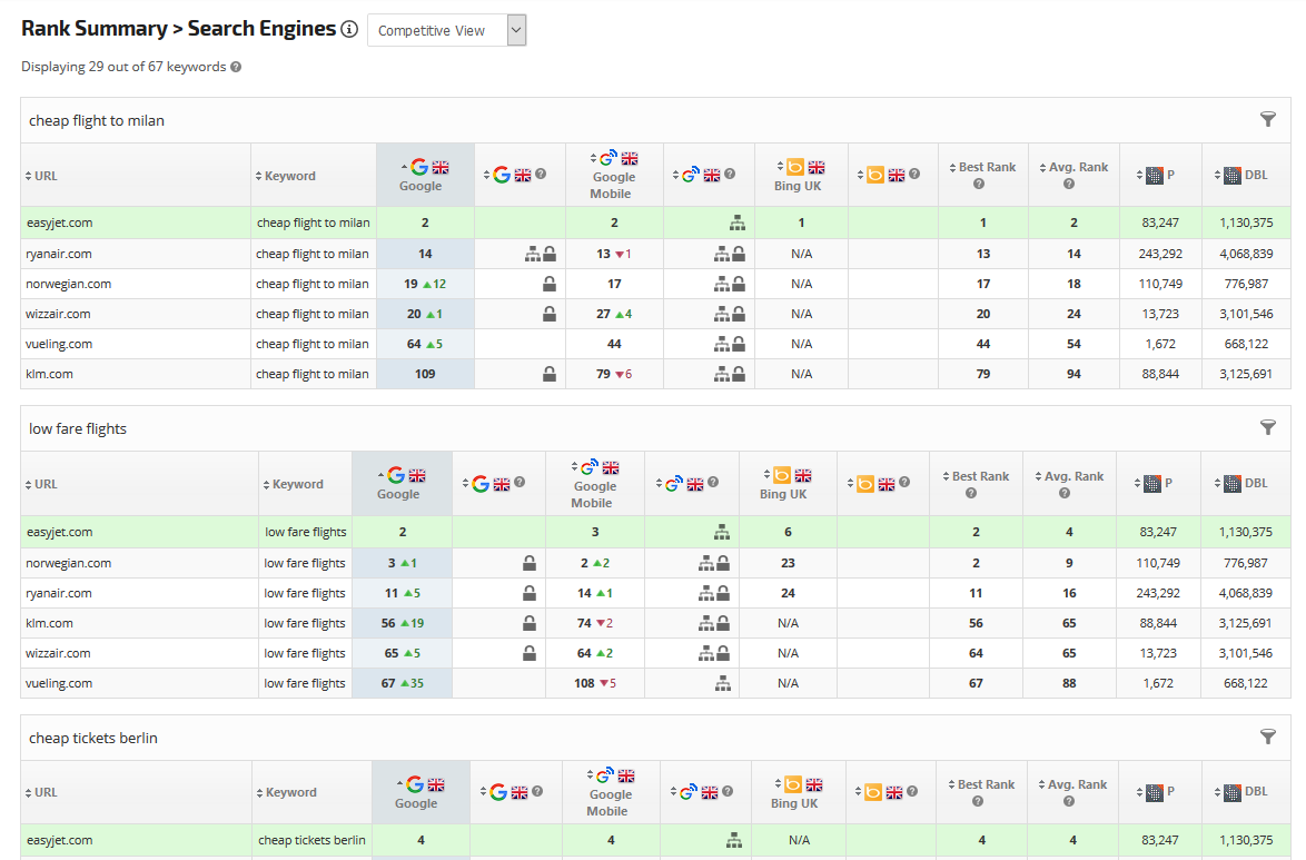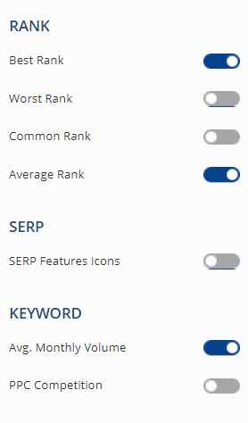 • Average Rank: the keyword's average rank on the report date across all the displayed search engines