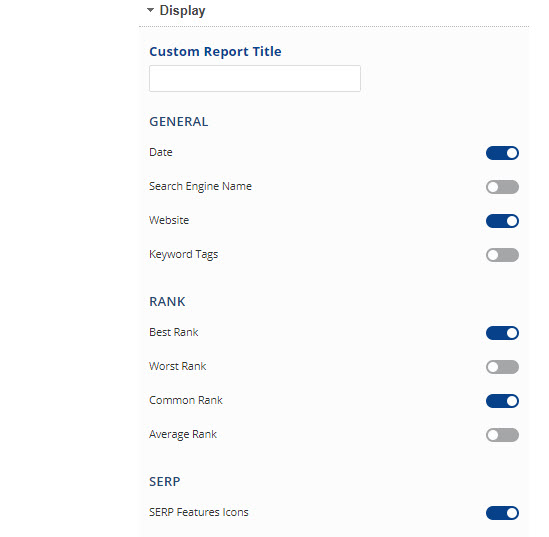 • Custom Report Title: (optional) enter a Title to display centered at the top of your report. This title will also display on your White Label PDF Reports; both in the bookmarked links and at the top of the report.