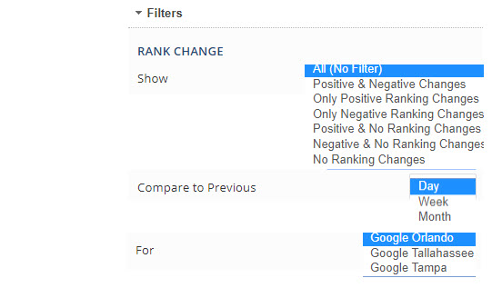 • Show: All (No Filter), Positive & Negative Changes, Only Positive Rank Change, Only Negative Rank Change, Positive & No Rank Change, Negative & No Rank Change, or No Rank Change