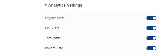 • Search Engine: by default the Search Engine column is hidden in the report table. To display switch the toggle ON