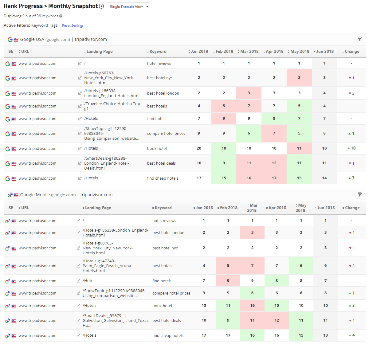 • Overall Change, then the difference between the baseline rank and the latest month displayed in the report is calculated and displayed in this column.