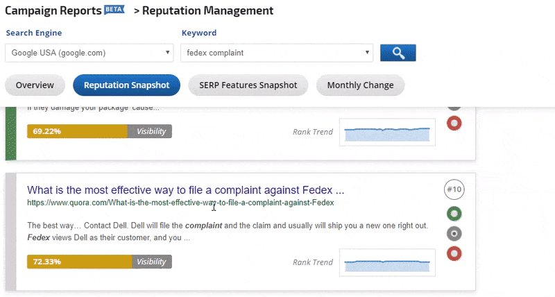 Reports & Tools > Organic Search > Rank Tracking > Reputation Management