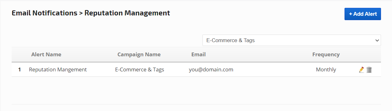 You can also click the Edit (pencil) icon to make changes to an existing alert, or click the trash can icon to delete an alert.
