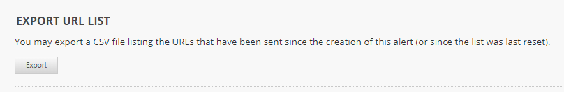 You may export a CSV file listing the URLs that have been sent since the creation of this alert (or since it was the last reset).