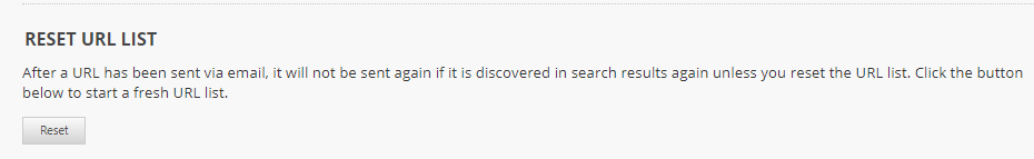 After a URL has been sent via email, it will not be sent again if it is discovered in the search results again. If you want to receive updates for the same URL, then you may reset the URL list.