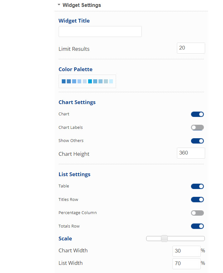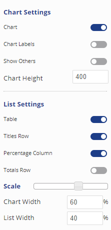 Expand Chart Settings by moving the slider to the right of Chart. Include options by moving the slider to the right of each selection.