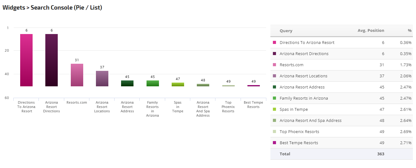 This widget can be added to white label marketing dashboards, client dashboards and PDF reports. In marketing dashboards you can set it to display at half or full page width. You can view a marketing dashboard sample that contains this and additional widgets (password is demo).