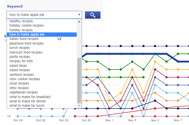 In the above graph, you may notice that on several dates there isn't a line representing the number 3 or 4 position, this is because one of the sites that are in the number 1 or number 2 rank position was also ranking for position 3 or 4.