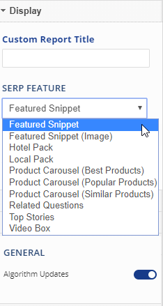 - Highlight of Google Algorithm updates can be set to display in the Report Options