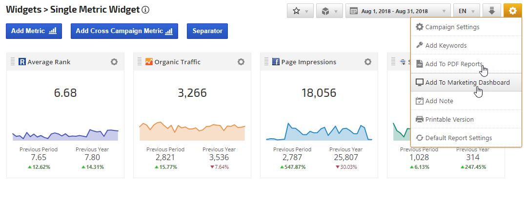 Authorizing third-party integrations expands your options from rank and link data to a wide variety of metrics that you can include in your Insight Graphs and Single Metric Widgets.