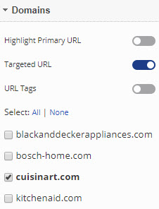 * Note: If in the above-mentioned screen the Target URL icons are not red, that means that the global Track Target URL(s) Only is not set. To reset the Track Target URL(s) Only scroll down to the Bulk Import or Update Keyword Data section of the Keyword Settings screen and click on the Target URLs link. Switch OFF the toggle for Track Target URL(s) Only and Save. Then switch ON the toggle again and Save. This will reset the Tracking for the Target URL(s) Only.