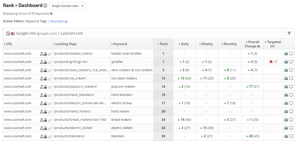 ** Note: If the Target URL was manually added to an individual keyword and a Global Target URLs list was added to track all the keywords, then both lists will be tracked and will display the list that has rank data.