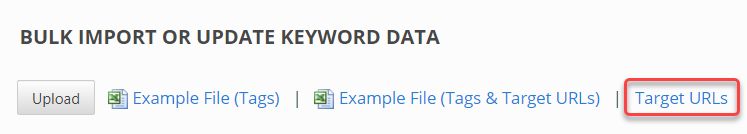 Add one Target URLs list for all keywords listed in the campaign. Navigate to the Campaign > Keywords screen and scroll to Bulk Import Or Update Keyword Data