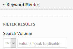 Or leave the value blank to include all Search Volume data. (learn more about Keyword Search Volume).