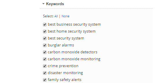 Filter the report by Keyword Tags by selecting All or individual tags.