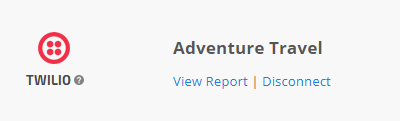 A success message displays and the Connect button is replaced by a link to the Twilio report(s), and an option to disconnect the campaign from the integrated data.