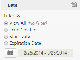 • View All or filter results by Date Created, Start Date or Expiration Date