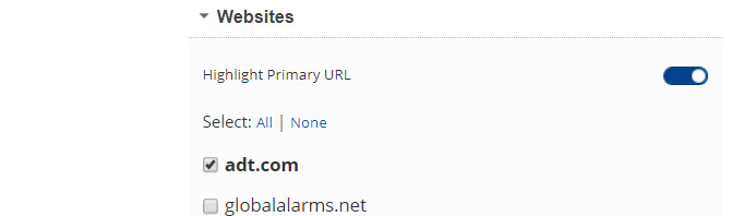 • Select the website(s) to be displayed in the report: use the All or None link for quick selection, or check the boxes beside the individual sites.