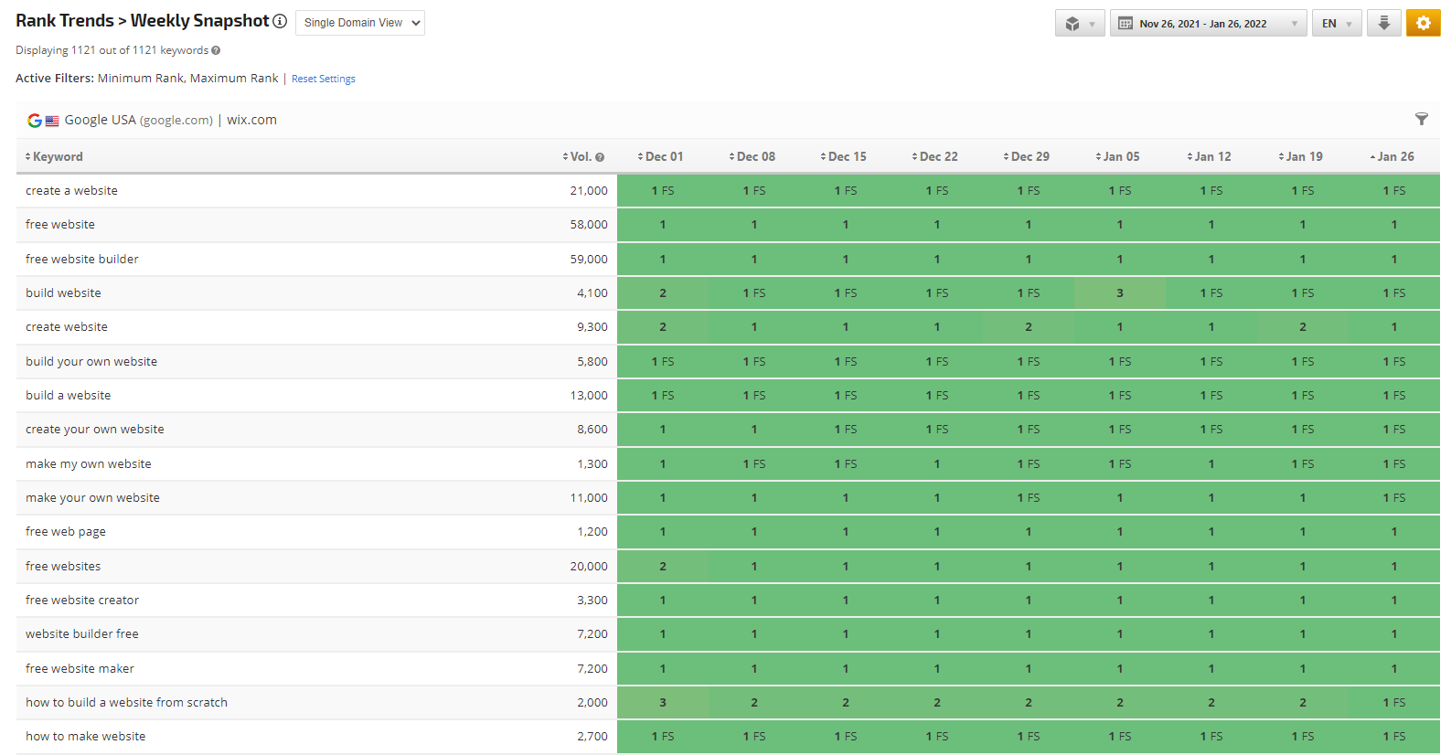 The Weekly Snapshot was specifically designed to provide a rank for one date each week based on the last day of the selected date range to demonstrate rank trends. For example, if the date range ends on a Monday, then rank for every Monday during the report period is displayed.