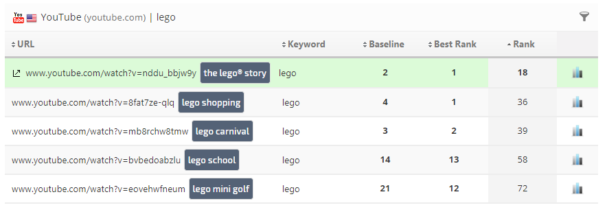Note: with the Target URL method, you may also track YouTube video rank in Google organic search