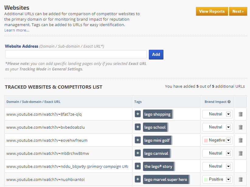Track Target URL(s) Only when using this feature for YouTube rank tracking.