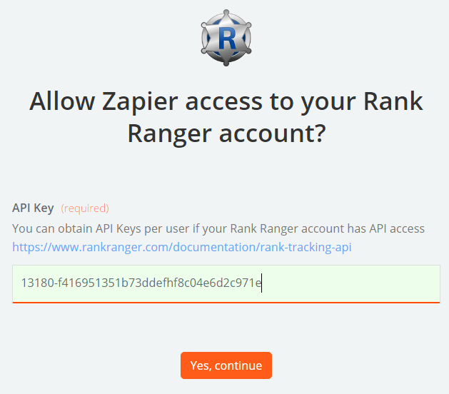 Rank Ranger API Key is required for our Zapier Apps. If your account doesn't have API access, please contact customer service to learn about upgrade options.
