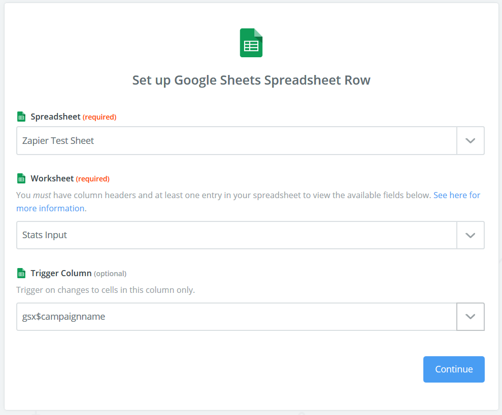 Example of Setting up Google Sheets as a Trigger