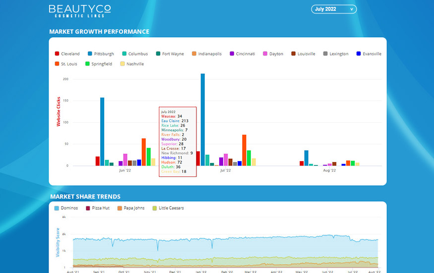 A comprehensive set of reports detailing how customers find and interact with your business listings on Google. Delve into a series of colorful data-filled reports providing you with the following information:
